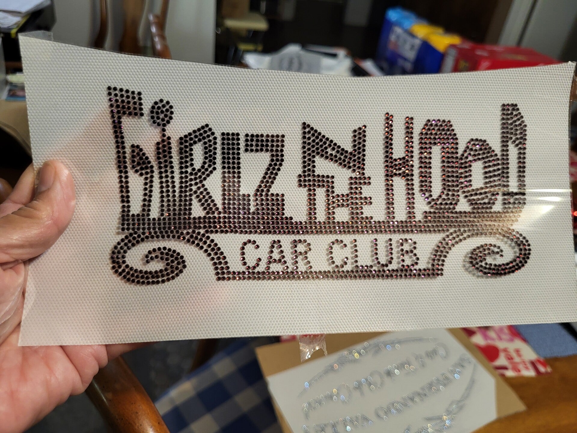 Set-up fee $45 each time you have a new design. These are car clubs I have done rhinestones for.